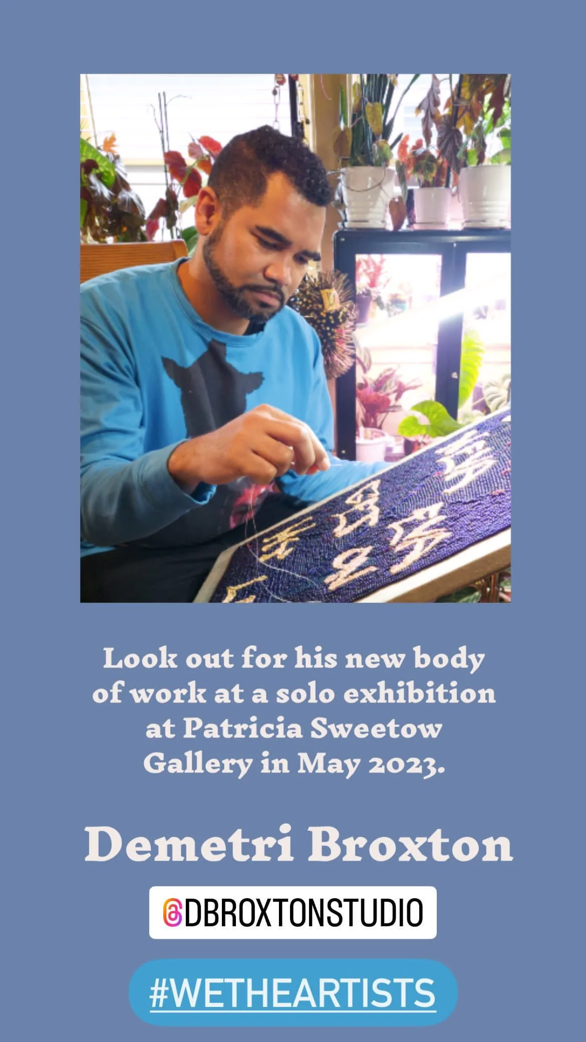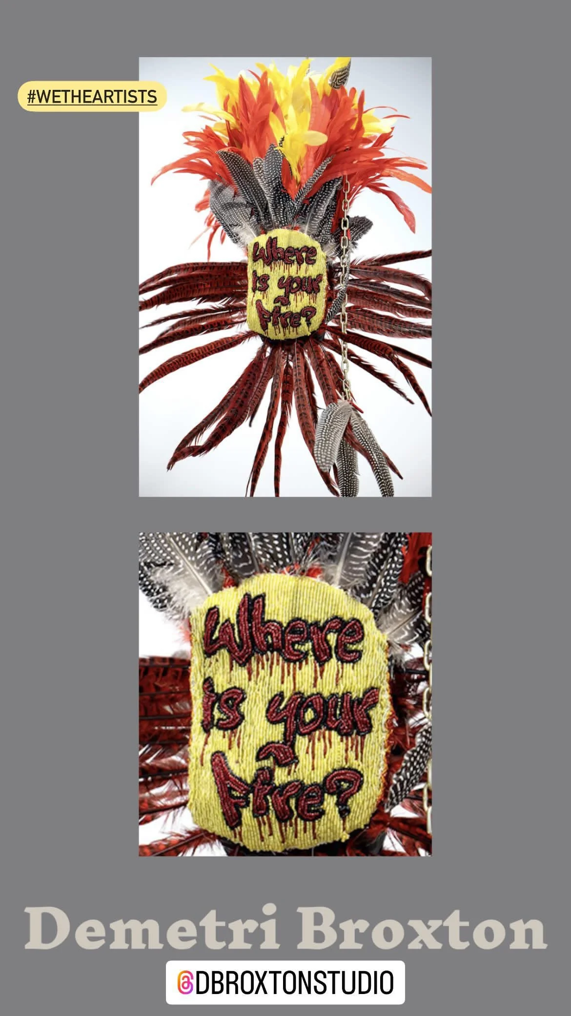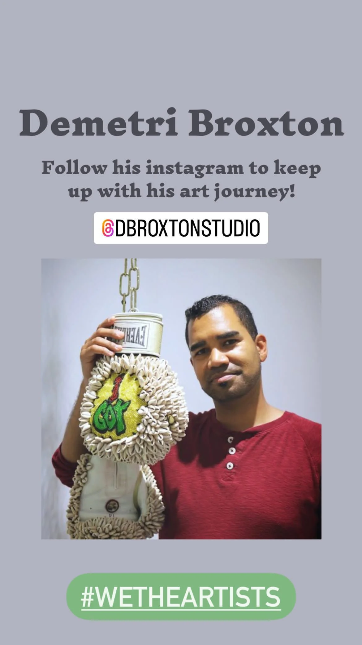 Demetri Broxton is a mixed media artist of Louisiana Creole and Filipino heritage, born and raised in Oakland, CA. His textile sculptures reflect his connection to the sacred art of the Yoruba people of Nigeria, the beading traditions of the New Orleans Mardi Gras Indians, and his love of hip-hop and graffiti. Broxton holds a BFA in Oil Painting from UC Berkeley and an MA in Museum Studies from SFSU.