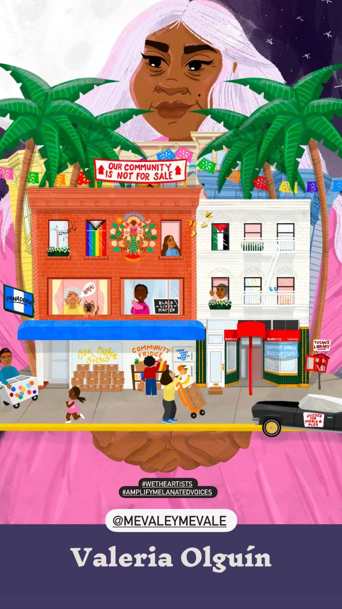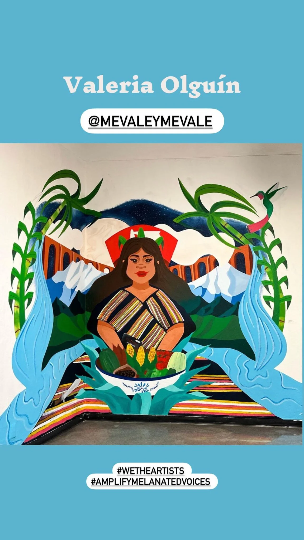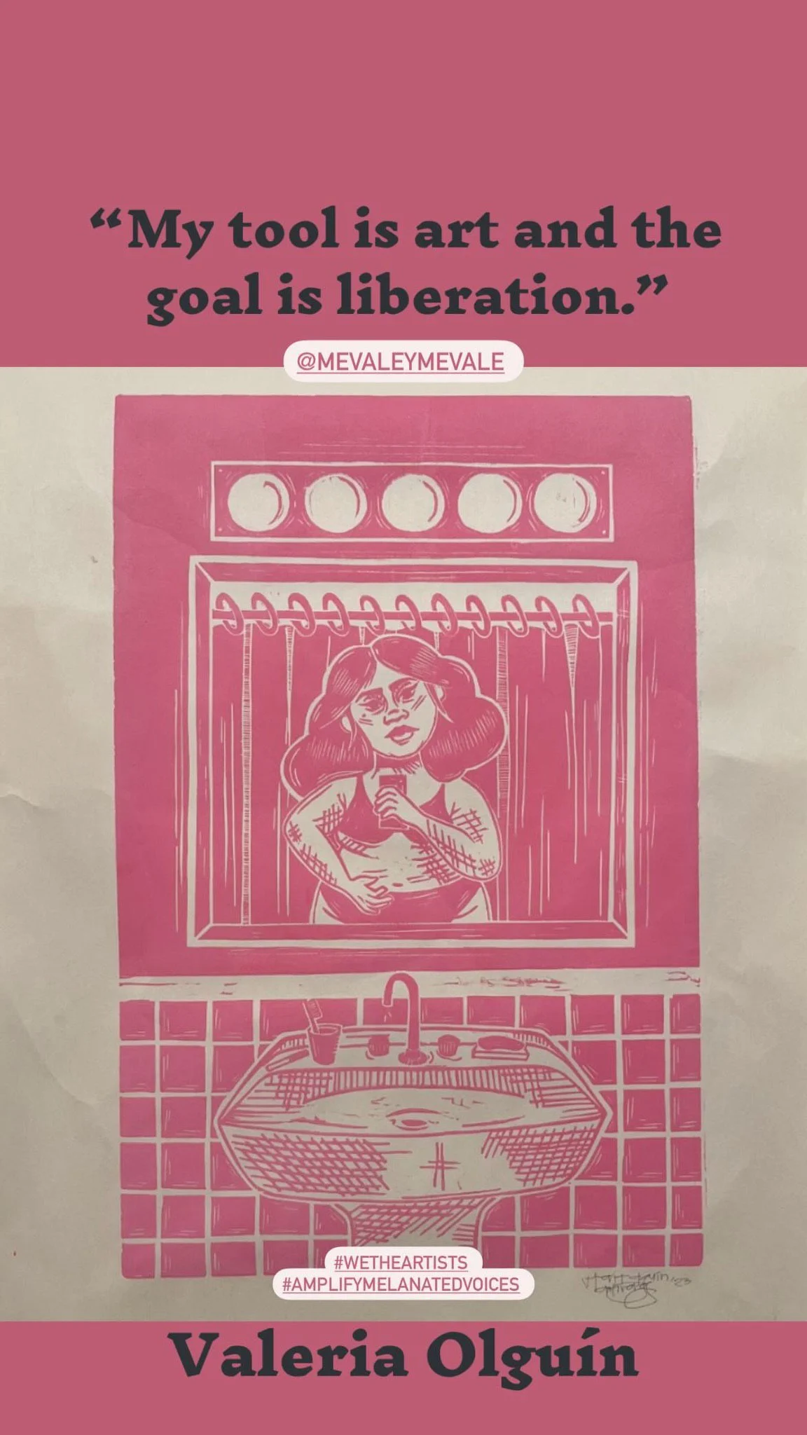 While Valeria recalls always having found joy in creating art, her reconnection to art as an adult came during her time at college when she began community organizing, where she quickly learned to incorporate art as a communicative tool for social issues and community work. Valeria makes art with the understanding that art can exist as a universal language. She draws inspiration from her personal experiences, understandings and her roots, with the goal of transcending language barriers to communicate with people who connect with the work.